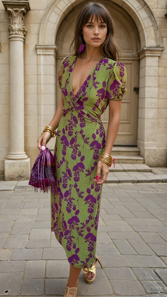 Isla Bella | Vestido largo cruzado con estampado elegante