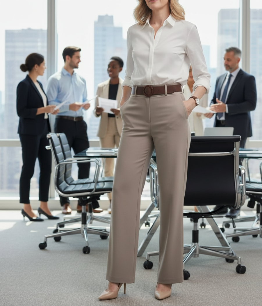 • Corte Palazzo que Estiliza: El diseño de pierna ancha es tendencia y alarga la figura al instante, creando un look muy chic.
